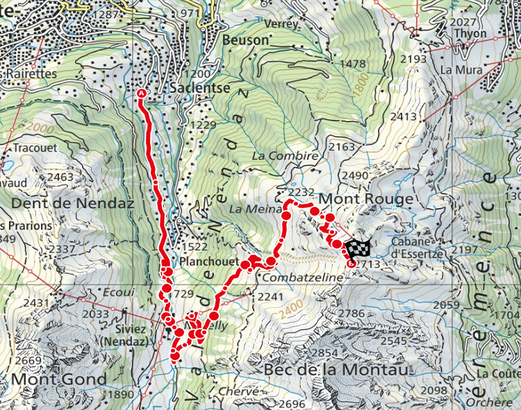 Quelques mots sur un point d’intérêt… Ayant déjà choisi Siviez dans un autre article, je constate ne pas avoir évoqué Le Bleusy, lieu de départ de cette randonnée et d’autres avant celle-ci. Le Bleusy est situé sur la rive gauche de la Printse à 1’400 mètres d’altitude et compte, notamment, de nombreux chalets de vacances.