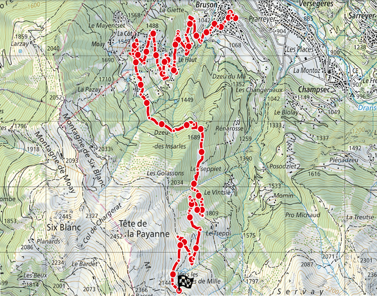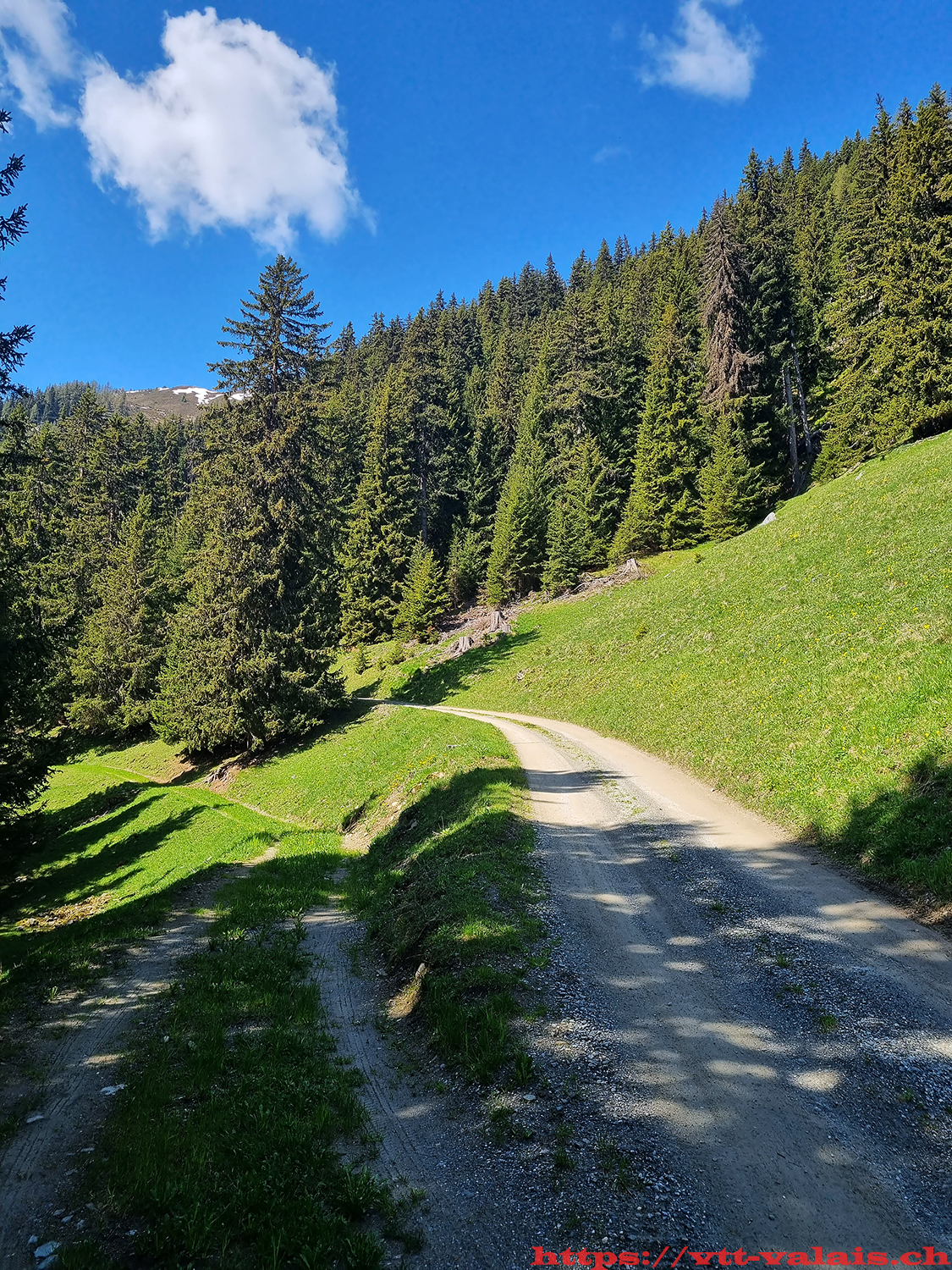 Quelques mots sur le parcours… Aucune réelle difficulté mise à part le dénivelé pour les non-initiés. La première partie de Bruson jusqu’à La Côt se déroule sur une route en asphalte n’amenant aucune difficulté. Comme je le dis régulièrement, prenez garde à la circulation même si dans cette région elle reste très modérée.