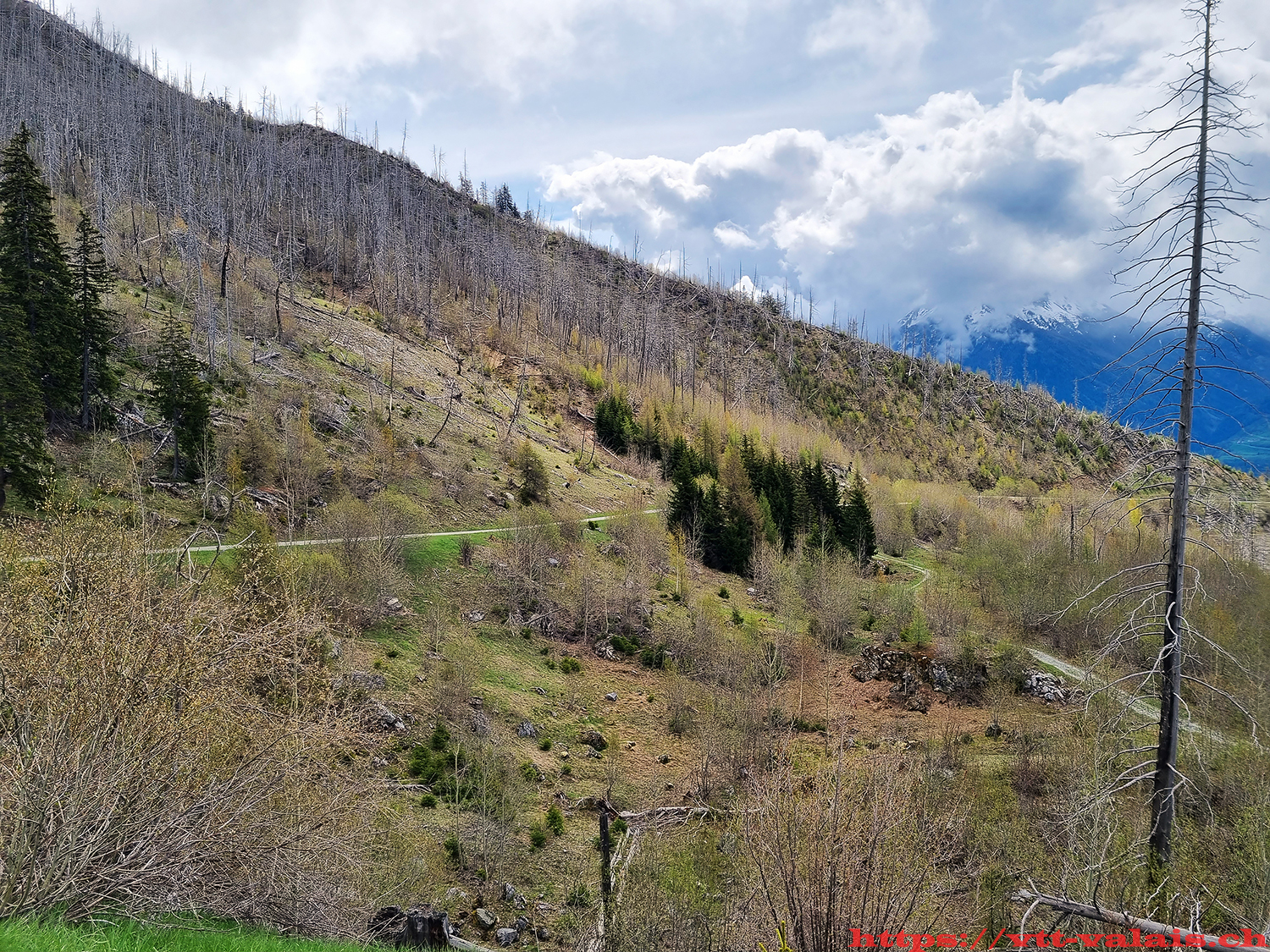 C’est en 2003 que plus de 300 hectares de forêt ont brûlé au-dessus de Loèche par la faute d’un pyromane y ayant mis le feu. Depuis, près de 25 ans ont passé et une forêt différente renaît doucement de ses cendres.