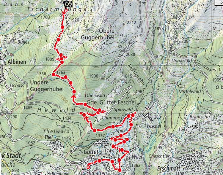 Quelques mots sur mon ressenti… Première randonnée de 2023 avec une région que j’avais déjà parcourue mais plutôt côté Est en direction de Feschel / Erschmatt ou Galm. Lors de cette balade, j’ai décidé de me rendre au-dessus d’Albinen dans un petit lieu entouré de nombreux chalets sous Niwe Stafel.